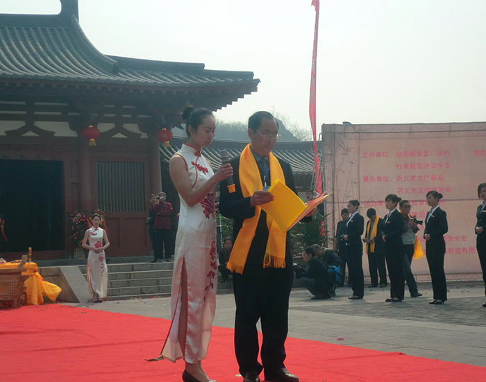 由鞏義市杜甫詩詞學會發(fā)起,杜甫故里和杜甫陵園協(xié)辦?;顒又卦诰拺咽ベt、弘揚文化,活動有祭祀上香、宣讀祭文、吟唱頌歌、樂舞敬拜、陵園掃墓等議程組成,屆時將會由來自省、市的各界領(lǐng)導,及各類杜甫研究機構(gòu)、杜氏宗親及我市的大中小學生等數(shù)千名人員參加祭拜詩圣活動。由我河南省杜甫機械有限公司主辦并贊助的大型拜祭大典大概在十一點圓滿結(jié)束,此意義重大而深遠。