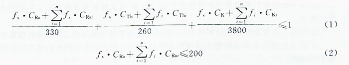 (2)建筑材料用工業(yè)廢渣的放射性物質(zhì)限制標(biāo)準(zhǔn)為:其中226Ra、232Th、40K的放射性活度應(yīng)同時滿足式(1)和式(2)。