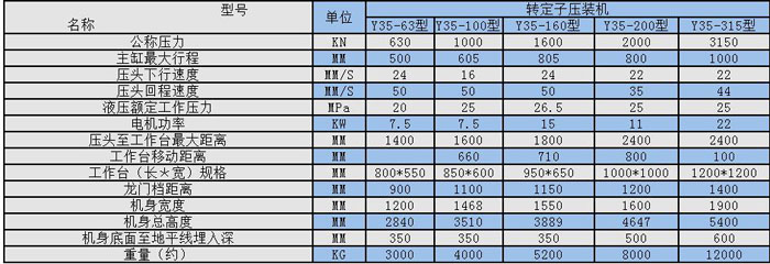 1.該系列液壓壓床以2-20MPA的液體壓力為動力源,外接三相AC380V 50HZ或三相AC220 60HZ交流電源.